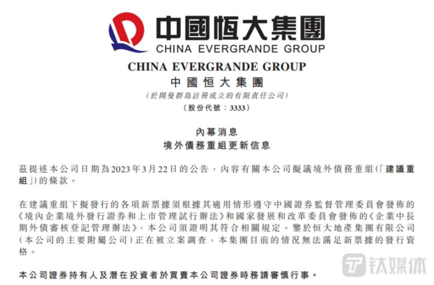 此外,无法发行新票据,就是没法再发债借钱,意味着从融资端堵住了恒大输血管道,也意味着境外债务重组或将以失败告终。