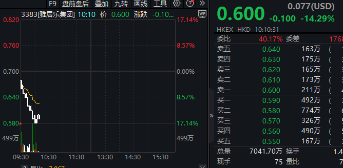 香港恒生指数盘中转跌!此前一度涨近1%,雅居乐集团跌超17%
