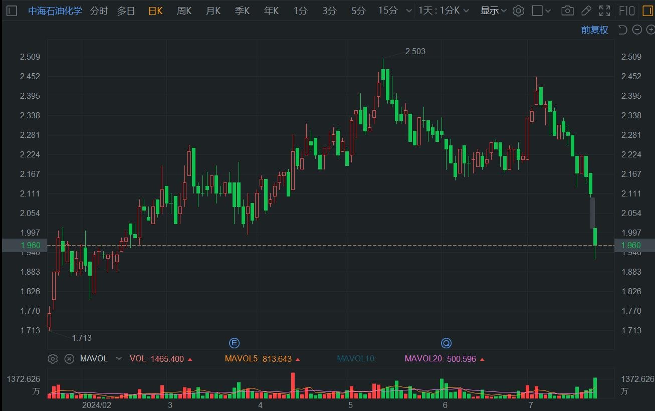发盈警,中海石油化学盘中大跌超9%,创5个月新低