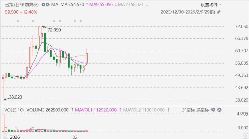 2月9日,港股市场AI应用股集体走强,其中,迅策(3317.HK)拉升涨近17%至61.8港元。